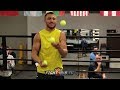 in this vasyl lomachenko video, lomacheko drills with the tennis ball and shows off new skills by juggling during his boxing workout as he prepares for jose pedraza in his lomachenko vs pedraza fight